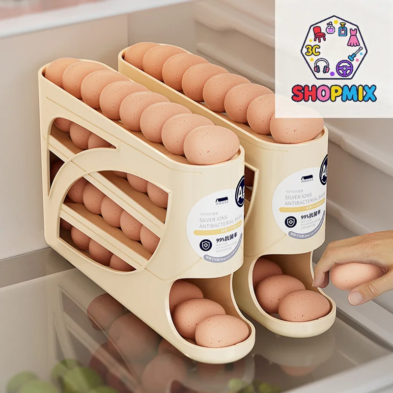 Keep your refrigerator neat and organized with this 4-layer automatic rolling egg holder designed for easy storage and access. Featuring a gravity-fed rolling system, eggs smoothly roll forward as one is removed, ensuring first-in, first-out use for freshness. The compact vertical design maximizes fridge space while securely holding multiple eggs without clutter. Made from durable, food-safe materials, it provides stable support and long-lasting performance. The open structure allows for clear visibility, so you can quickly check your egg supply at a glance. Ideal for refrigerators, kitchen counters, and pantry shelves, it helps maintain a tidy and efficient kitchen setup. Easy to assemble and clean, it offers everyday convenience for busy households. Enjoy safer storage, better organization, and effortless access with this practical egg dispenser rack.